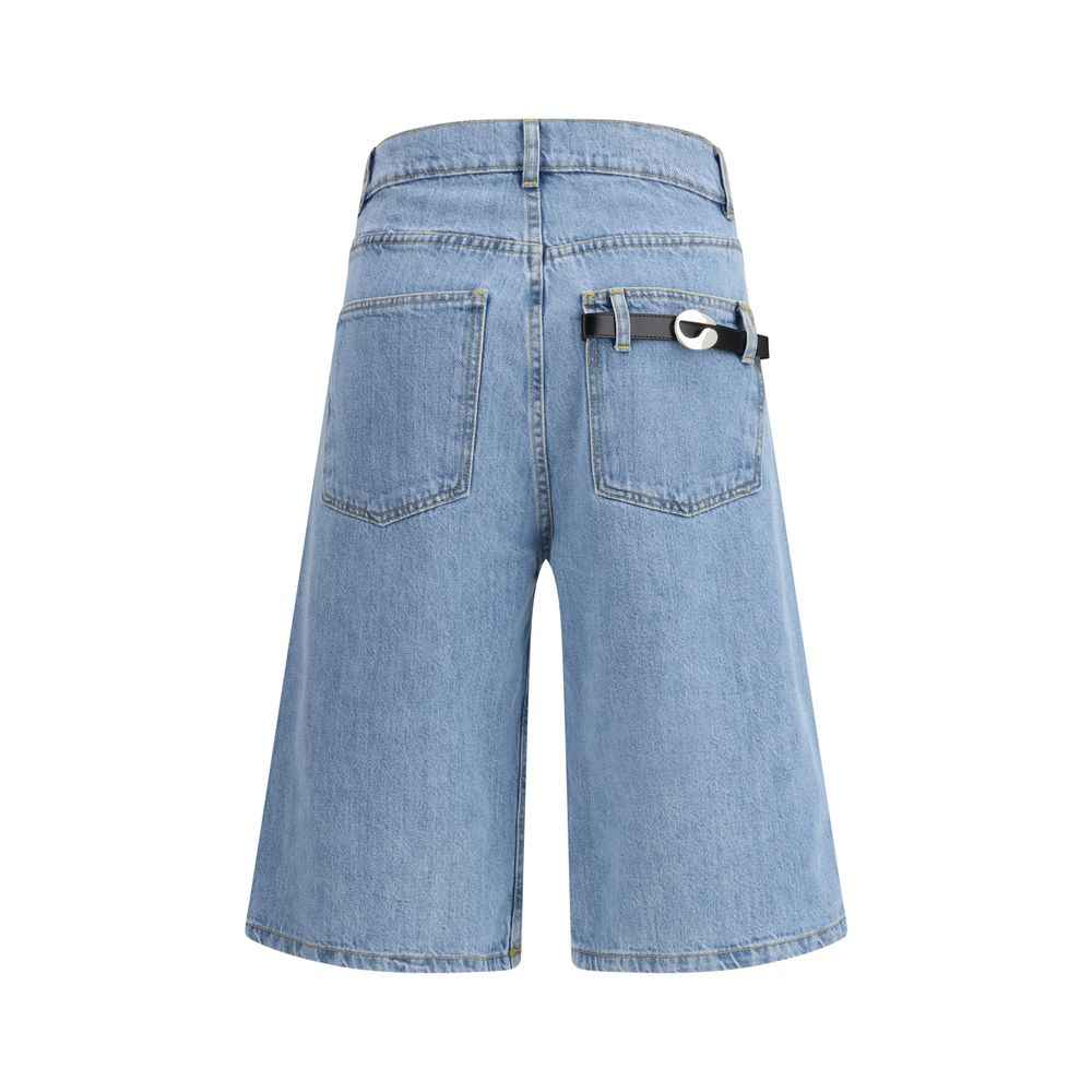 The denim Shorts by Coperni express a refined modern minimalism through a bermuda silhouette with a subtly wide leg, designed to frame the figure with ease. The smooth, structured denim creates a clean aesthetic, balanced by a regular waist with button and zip fastening and a traditional five-pocket construction. At the back, the strap detail with buckle adds a distinctive touch, subtly signing the piece with contemporary character.