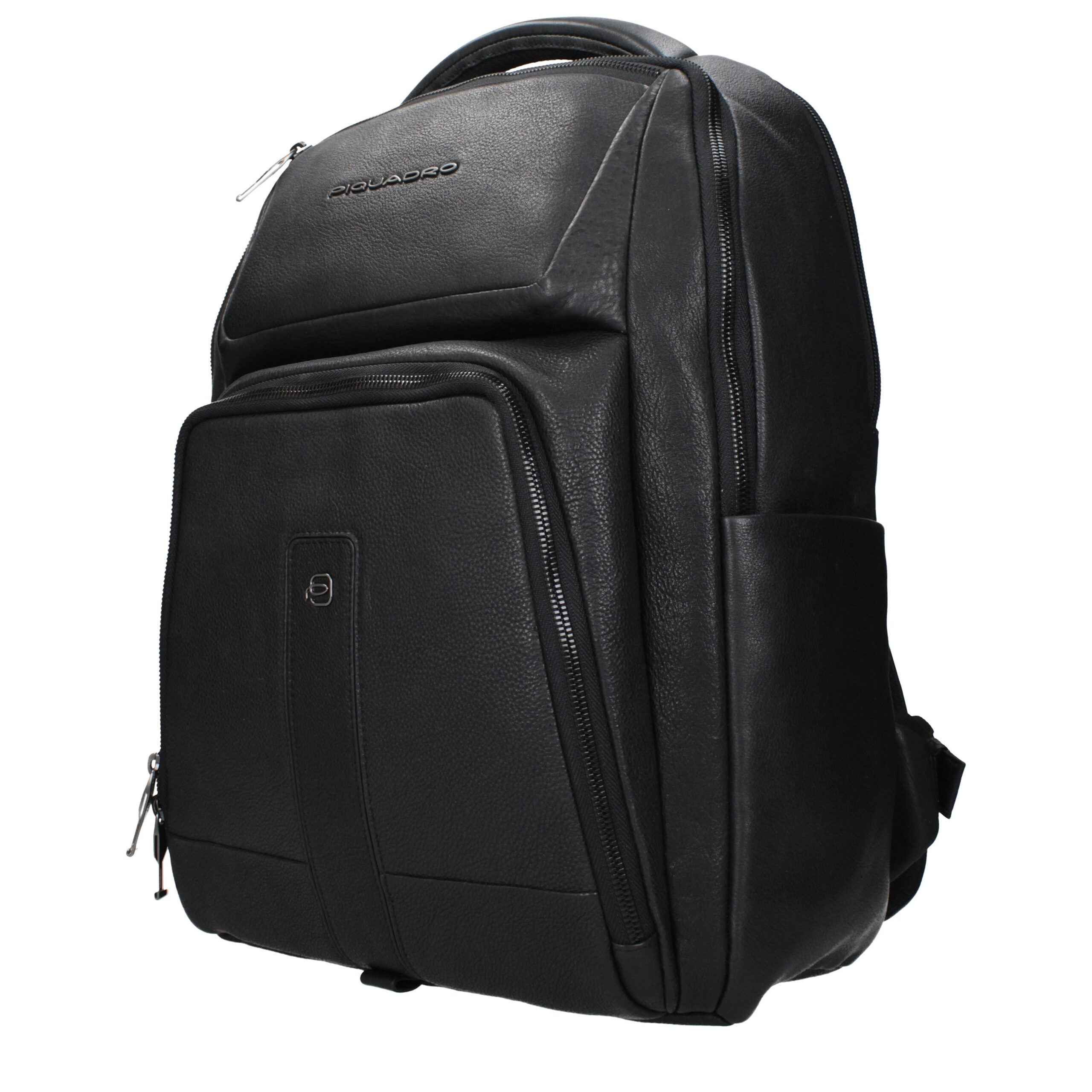 The product with MPN CA6300S129N and code F84296 leather in black is a backpacks and bumbags designed by Piquadro. It has features like front logo, back logo, back adjustable straps, ipad/pc cases, connequ, vintage effect.