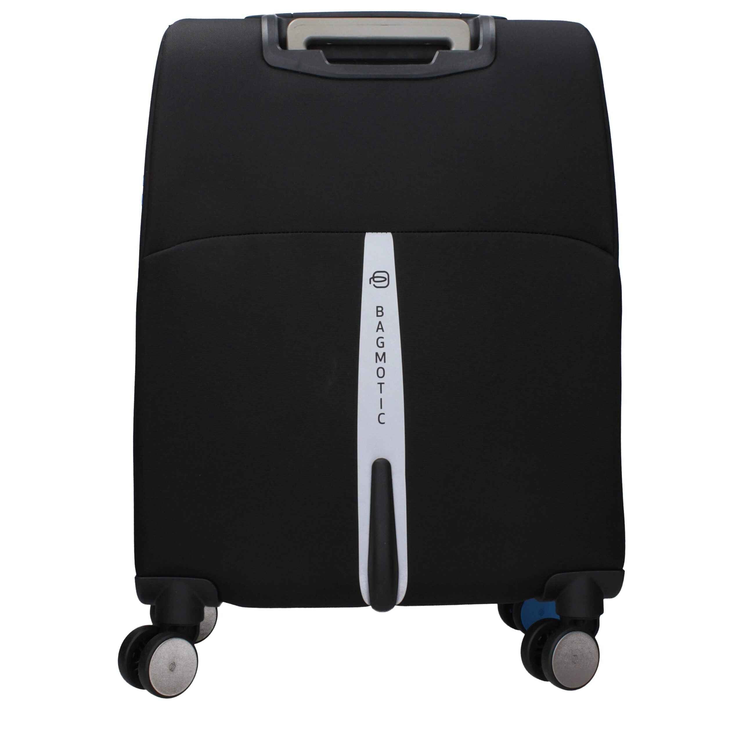 The product with MPN BV3849BMTN and code F83114 fabric in black is a trolley designed by Piquadro. It has features like front logo, adjustable handle, tsa closure, connequ, removable details, ipad/pc cases, usb output.