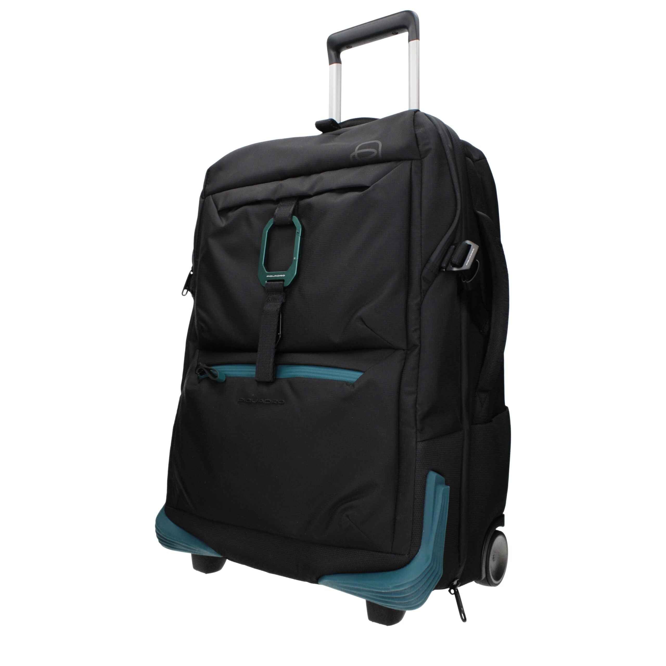 The product with MPN BV6379C20N and code F84486 fabric in black is a trolley designed by Piquadro. It has features like front logo, front detail, adjustable handle.