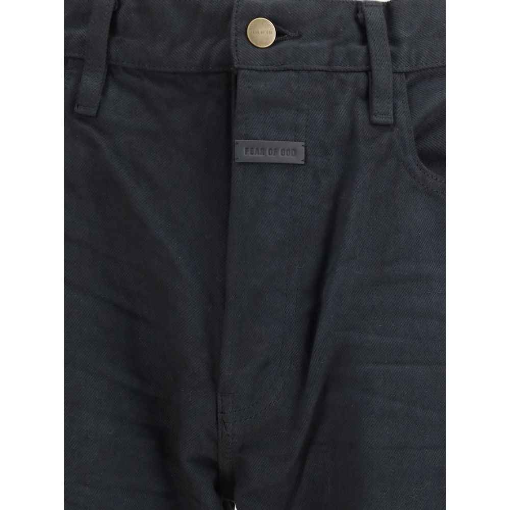 The denim Jeans by Fear of God reflect the brand’s refined and minimalist aesthetic. Crafted from pure cotton denim, they feature a concealed button closure with a single exposed button, classic five-pocket design, and belt loops at the waist. A tonal leather logo patch on the front adds a subtle signature detail, completing this timeless piece with modern edge.