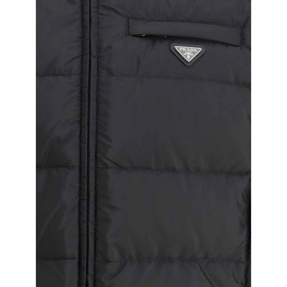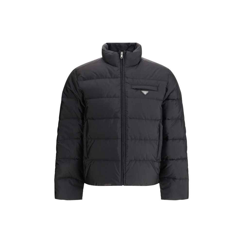 Prada’s re-nylon Down Jacket combines sustainability and functionality with a modern design. It features a front zipper closure, two side pockets and a welt pocket on the chest. The distinctive triangular plaque sewn on the front and the padded quilted pattern complete the garment with a distinctive and technical touch.