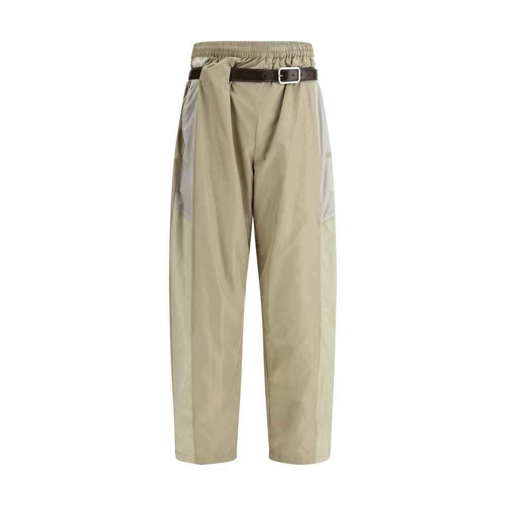 Magliano’s nylon Pants with Built-in Waistband are a blend of style and function. The oversize design offers a comfortable, relaxed fit, while the elastic waistband ensures comfort and practicality. The two zippered welt side pockets add a modern and secure touch, perfect for storing small items. The built-in adjustable leather belt allows you to customize the fit, completing the look with a stylish detail.