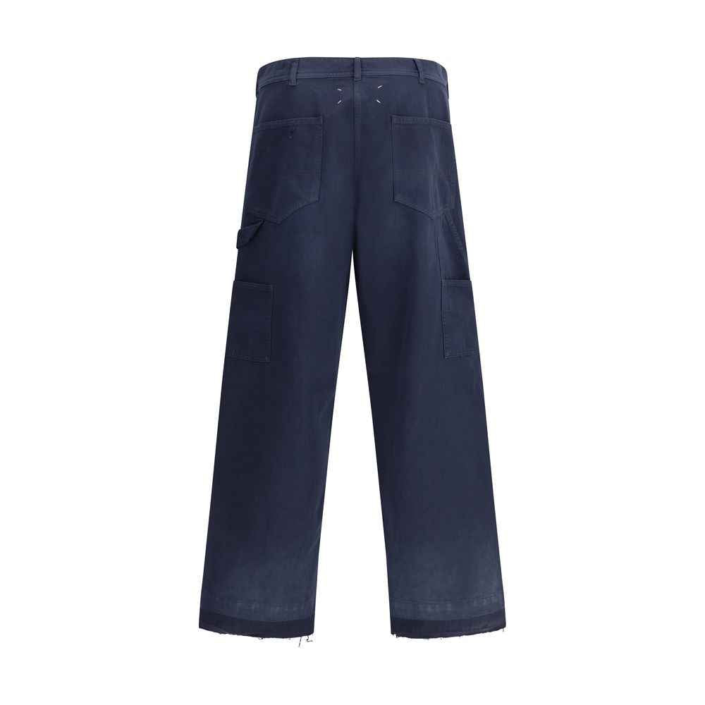 The Margiela Cotton Trousers blend elegance with signature details. The fabric features tonal stripe embroidery across the entire surface and the iconic contrasting stitch on the back for a distinctive touch. Belt loops accommodate a belt, while a zip, hidden hook, and single visible button ensure practical closure. Five classic front pockets and two back patch pockets complete the design, with a raw-cut hem adding a modern finish