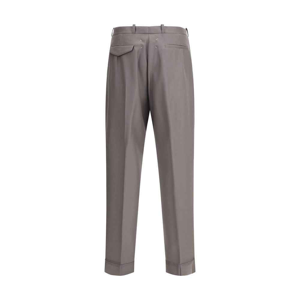 The Margiela Green Wool Trousers with pleats combine elegance and functionality in a contemporary piece. The pleated design enhances the silhouette, while the waistband loops allow for a belt to complete the look. Side pockets add practicality without compromising style, making this model perfect for formal occasions and refined outfits