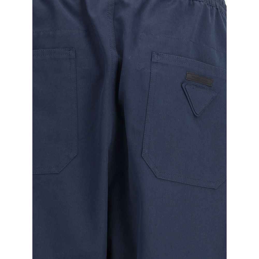 Prada’s Cotton Pants combine comfort and style with an elasticized drawstring waistband and front zipper closure. They feature two side welt pockets and two patch pockets on the back, embellished with the iconic logo that adds a distinctive touch to the design.