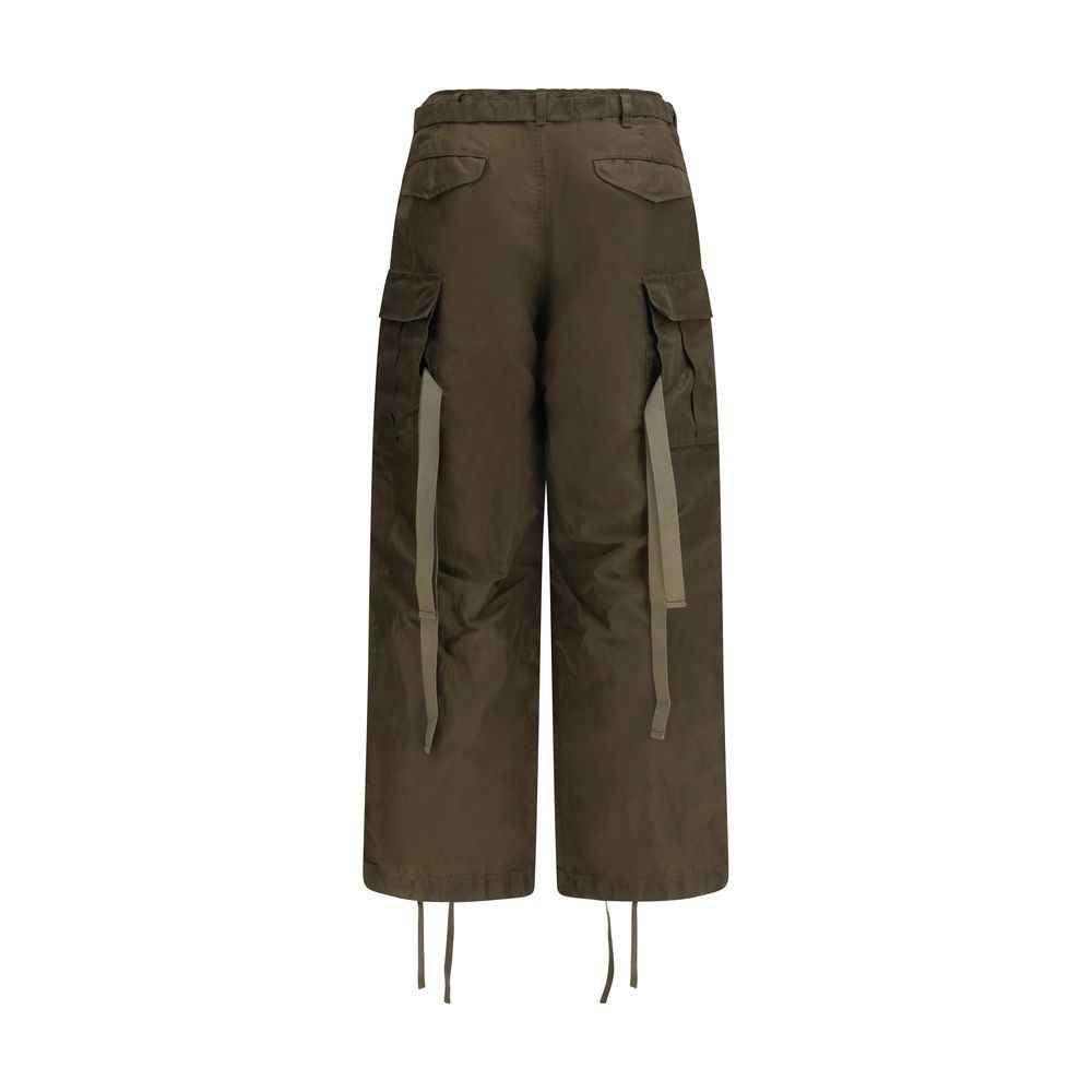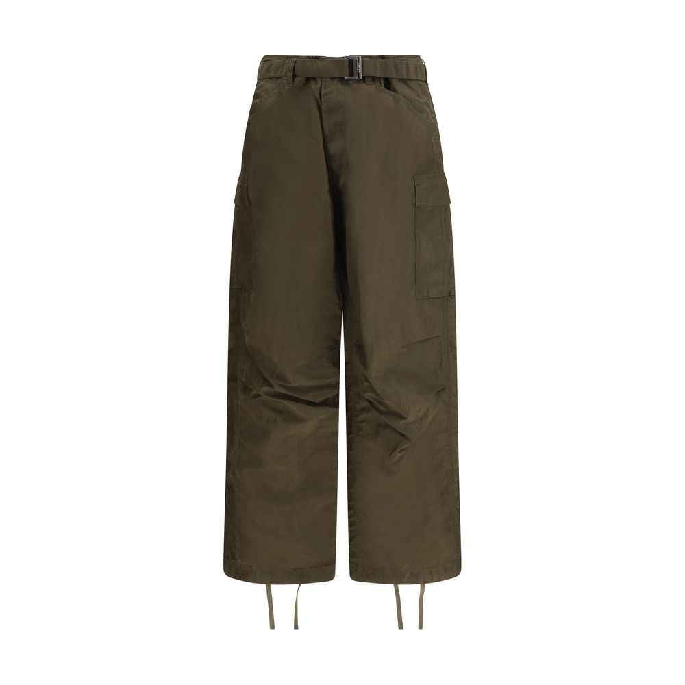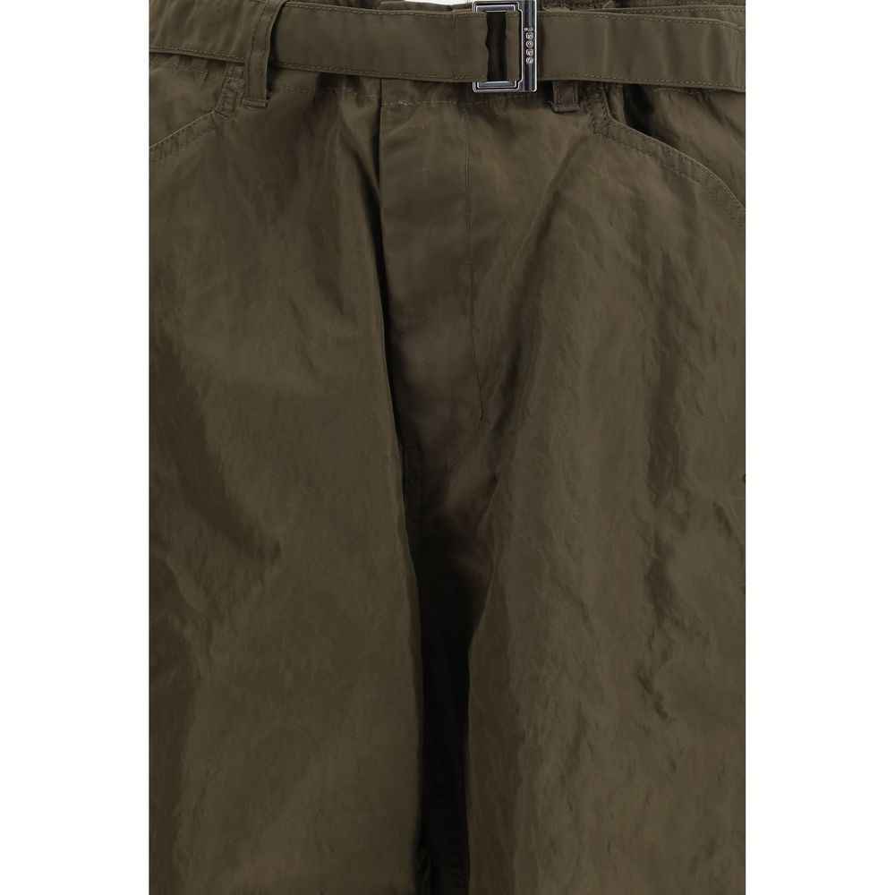 The cargo nylon Pants by Sacai combine functionality and style with an innovative closure: a built-in belt with buckle and zipper. The belt loops at the waist offer additional adjustment options. Featuring two side slit pockets and two cargo pockets with flaps, these pants combine practicality with an urban-chic look. The two back pockets with flaps and the drawstring hem complete the design, making them versatile and perfect for a casual yet polished look.