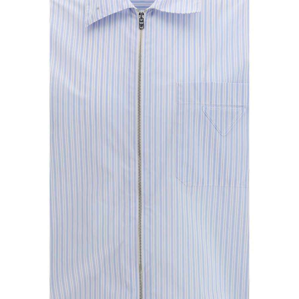 The striped re-nylon Shirt by Prada is a modern and functional garment made from re-nylon, an innovative and sustainable material. The classic collar and metal zip front closure add a contemporary touch, while the long sleeves and adjustable buttoned cuffs ensure a versatile fit. A patch pocket on the chest, featuring Prada’s conceptual triangular logo, adds a distinctive detail. The straight hem and striped pattern complete the design, making this shirt a perfect blend of elegance and practicality.
