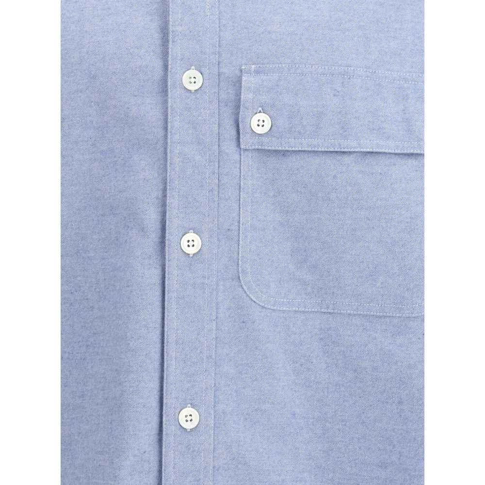 The Flannel 4-Bar Shirt by Thom Browne is a winter wardrobe essential, showcasing the Maison’s discreet elegance and meticulous tailoring. Crafted from soft, warm flannel, it features a button-down point collar, chest patch pocket, and front button closure. The signature 4-bar stripe at the left sleeve serves as a defining detail, while pleated buttoned cuffs and a back yoke with locker loop underline the shirt’s precise construction. Finished with a name tag appliqué at the front hem and the signature striped grosgrain loop tab at the back of the neck, this piece blends comfort, structure, and timeless sophistication.
