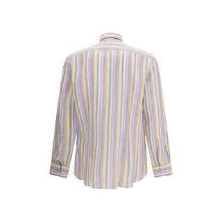 Brunello Cucinelli Blue Linen Pattern Shirt