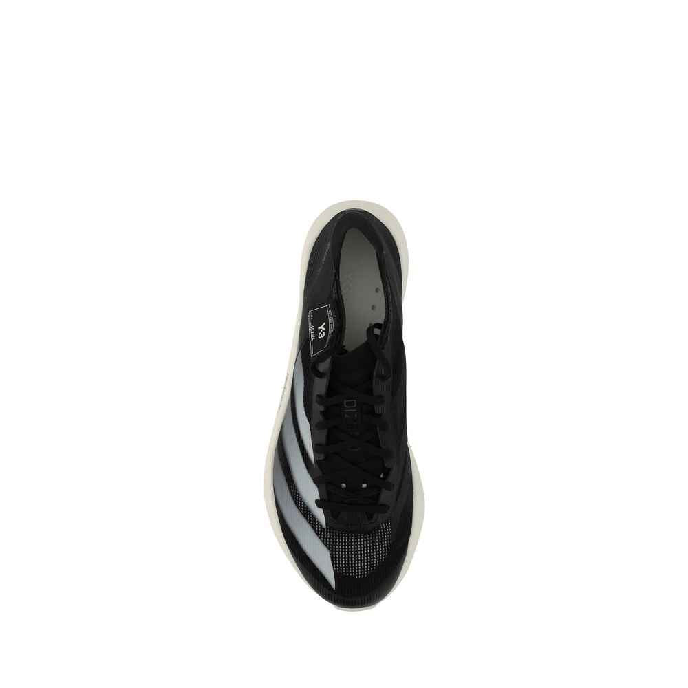 Takumi Sen Sneakers by Y-3, ankle-skimming design, tapered raised toe, front lace-up closure, contrasting logo label, graphic design on outer side panel, iconic brand logo patch on outer panel.