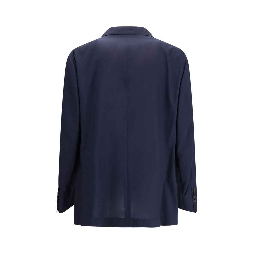 The Three-button Blazer by Brunello Cucinelli combines elegance and comfort. Made from wool and silk, it features notch lapels, a three-button front, a welt chest pocket, flap pockets, and a double vent at the back for ease of movement. A refined and functional piece.