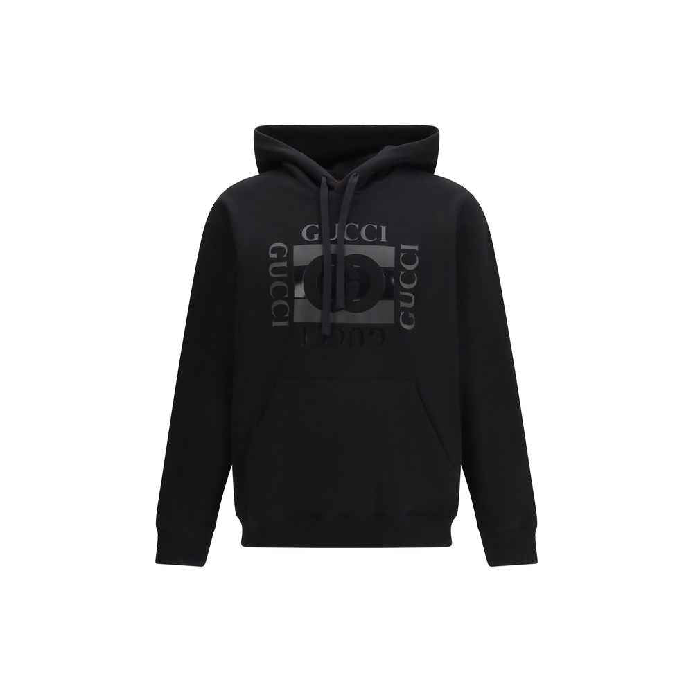 The Hoodie by Gucci is a casual and stylish piece, crafted from soft black brushed cotton jersey. The Gucci Incrocio GG print on the front adds an iconic and distinctive touch. The fixed hood with drawstring offers an adjustable fit, while the kangaroo pocket and ribbed trim complete the design, combining comfort and style. Perfect for a luxury streetwear look, this sweatshirt is a must-have for lovers of Gucci style.