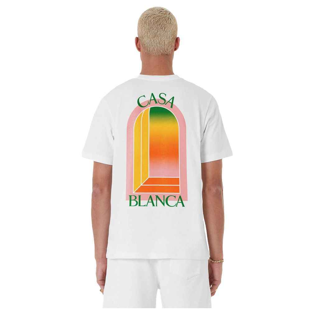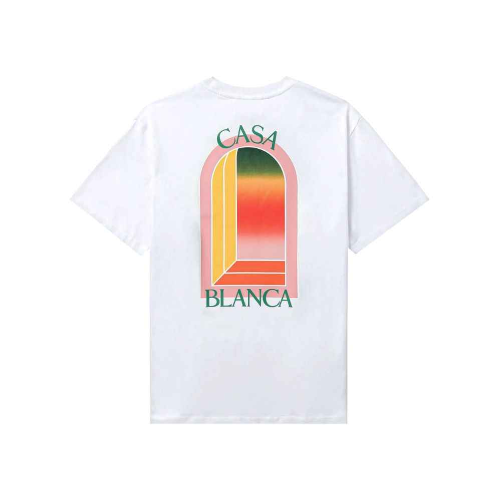 Casablanca, white cotton crew neck t-shirt, colored arch print on the front and back