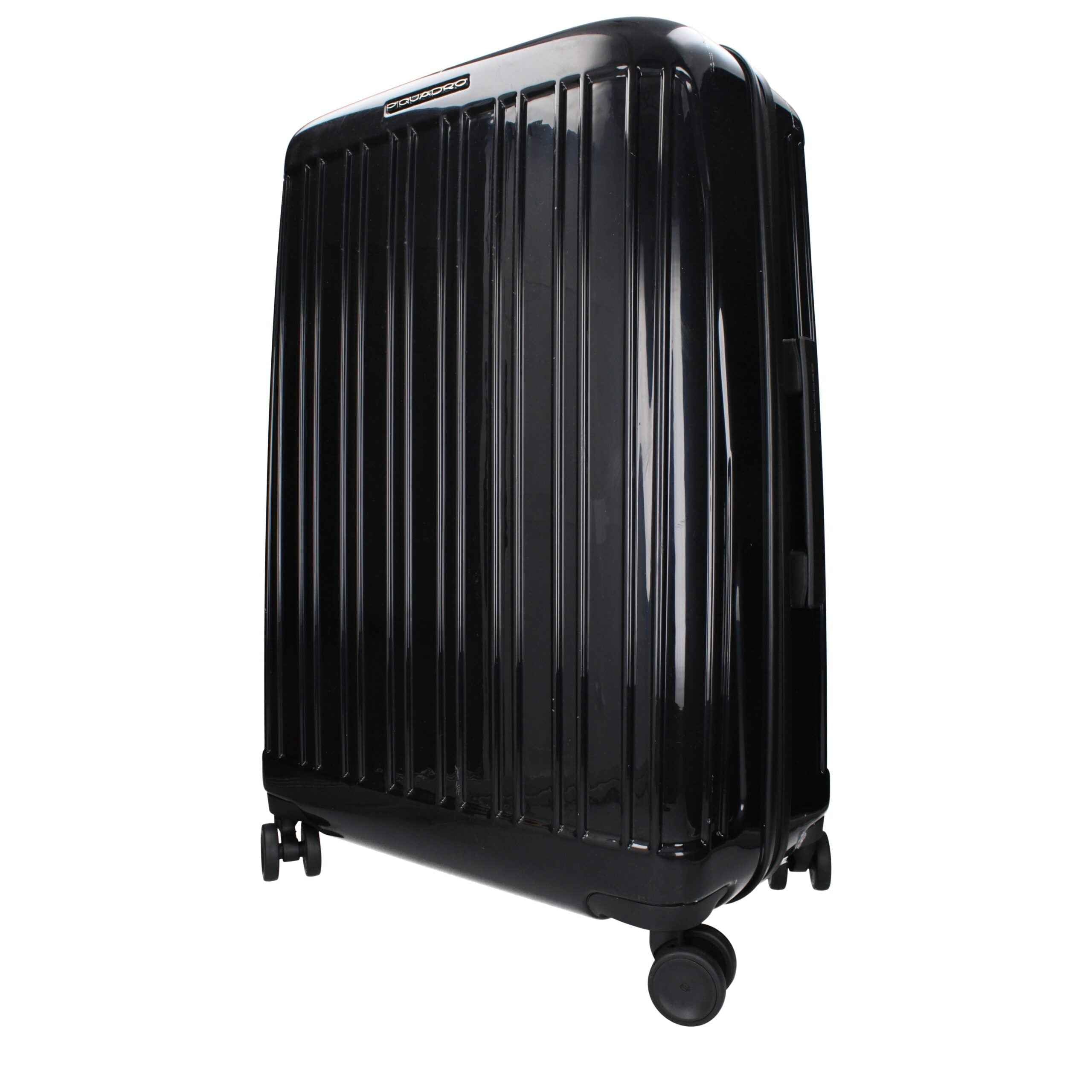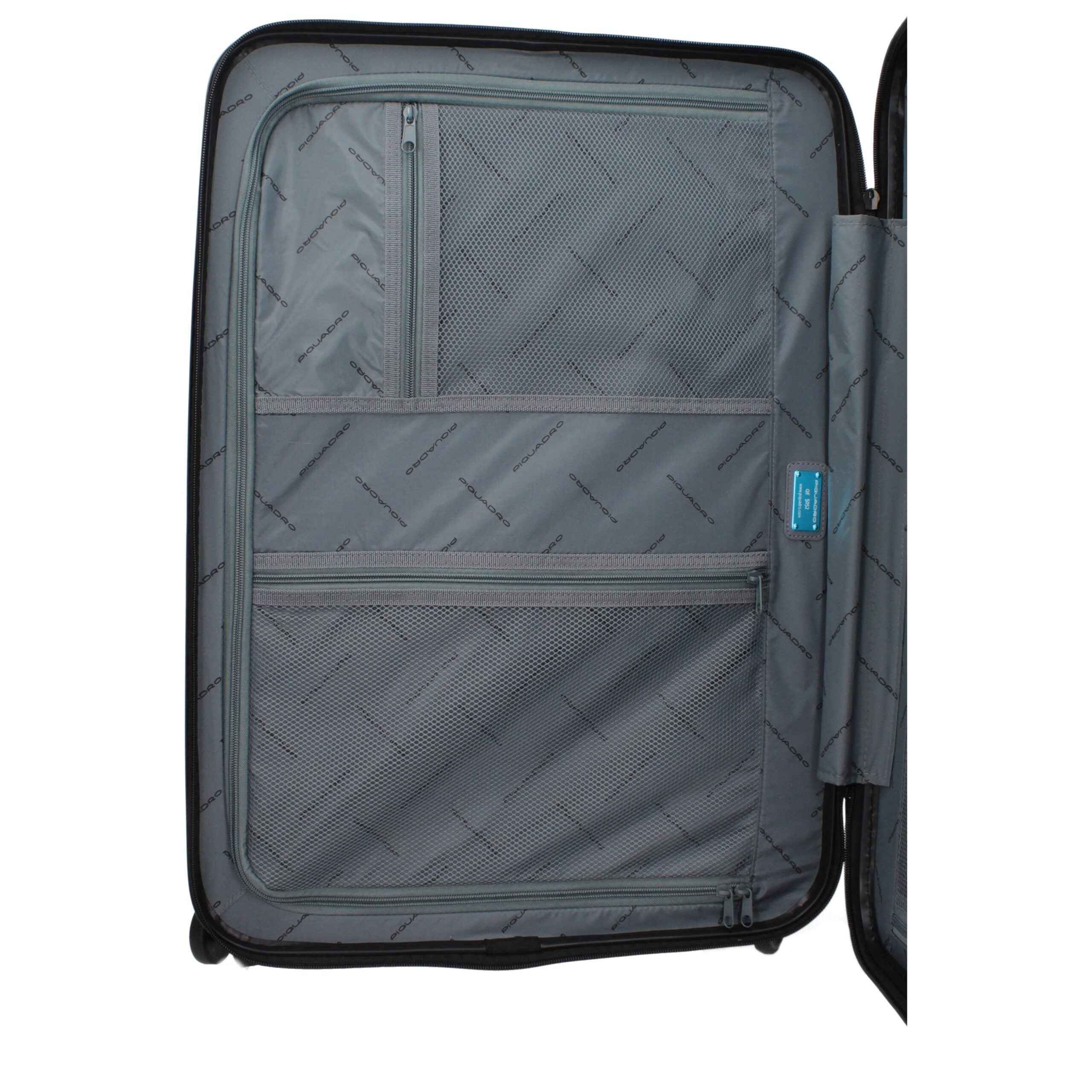 The product with MPN BV5028SK70N and code F84469 polycarbonate in black is a trolley designed by Piquadro. It has features like front logo, side logo, tsa closure, adjustable handle, vintage effect.