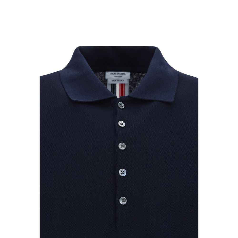 Cotton Polo Shirt by Thom Browne, classic collar, button fastening on the front, iconic branded tricolour band detail on the back, iconic branded signature patch in contrasting colour on the front.