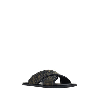 Fendi Brown Calf Leather Bos Taurus Flat Sandals