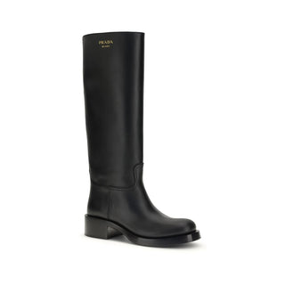 Prada Black Calf Leather Bos Taurus High Heel Boots