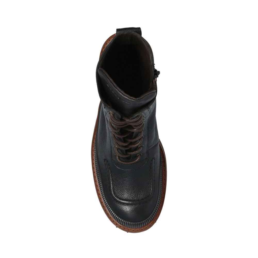 – Composition: 100% calf leather – Leather lining and insole – Rubber sole – Textured black leather – Lace-up fastening – Side zip fastening – Back logo detail – Heel 7 cm / 2,75 in – Made in Spain –