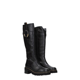 PINKO Black Calf Leather Bos Taurus Ankle Boots