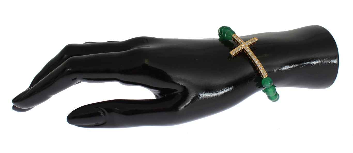 Stone/Bead: Green Jade beads, CZ Diamond cross