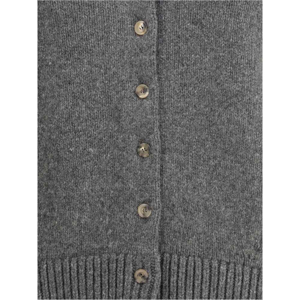 The Nelya Sweater by Khaite is crafted in robust, lofty cashmere and designed in a relaxed jersey stitch. Finished with ribbed cuffs and hem, it is elevated by tortoiseshell buttons, balancing ease with quiet sophistication.