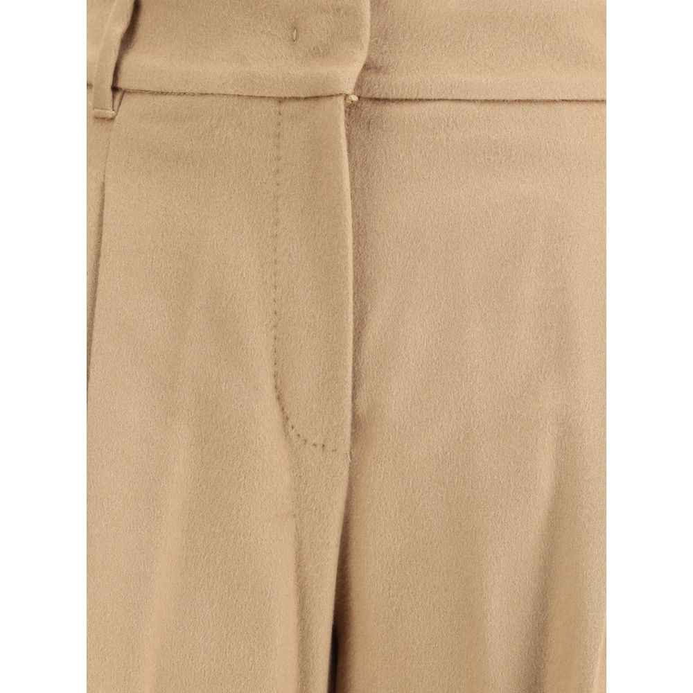 The Paride Trousers by Max Mara Studio embody relaxed sophistication and fluid elegance. Crafted from pure virgin wool drap, they feature a wide-leg silhouette and a softly flowing fit that moves effortlessly with the body. The matching coated fabric belt allows for a refined definition of the waist, while the double front pleats add subtle structure and volume. A high waistband with concealed zip and hook closure showcases precise tailoring, complemented by slanted side pockets and a pressed crease that enhances their polished look. Perfect for refined yet effortless ensembles, these trousers capture Max Mara Studio’s signature balance of comfort, craftsmanship, and timeless femininity.