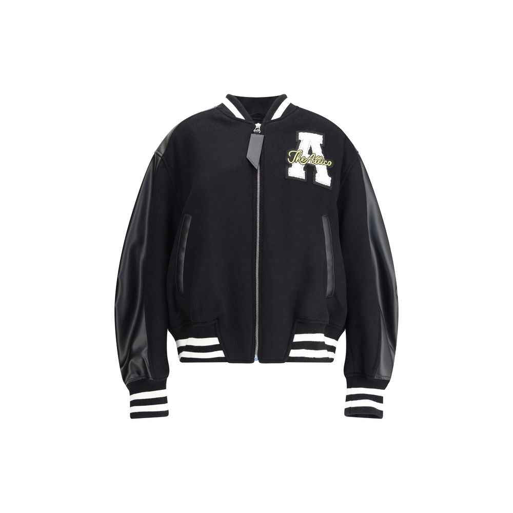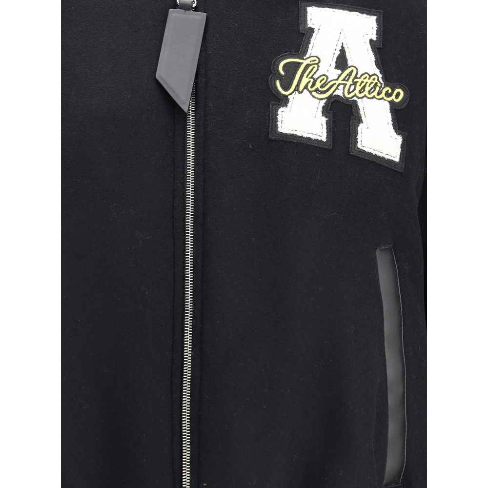 The Attico’s varsity bomber Jacket is made of wool cloth and features a front zipper closure. Ribbed collar, cuffs and hem give a sporty touch, while the two leather welt pockets add elegance. Paneled sleeves and a stitched logo on the front and back complete the garment’s distinctive design.