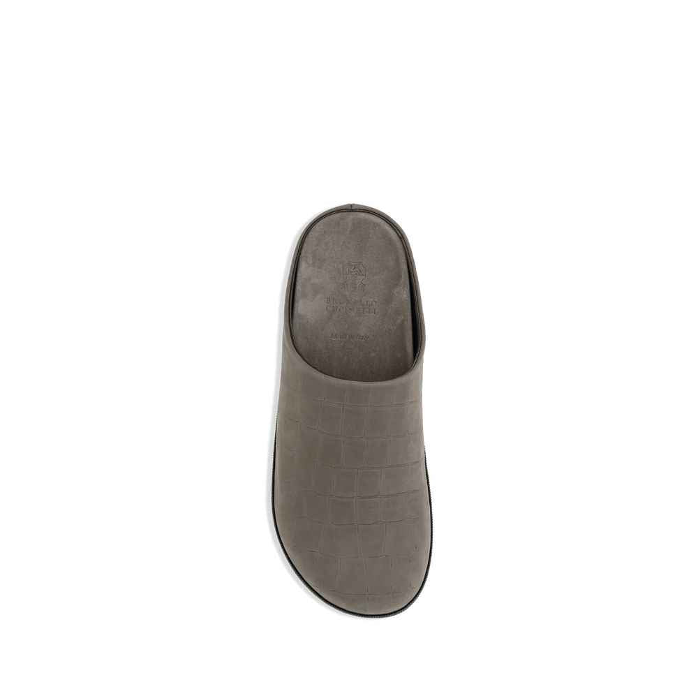 Brunello Cucinelli’s leather Mules express understated elegance and careful craftsmanship. Featuring a refined croc-effect design, they have a rounded toe and a flat sole designed for maximum comfort. The distinctive touch is provided by the inserts of iconic shiny jewels along the profiles, which illuminate the silhouette with understated sophistication.