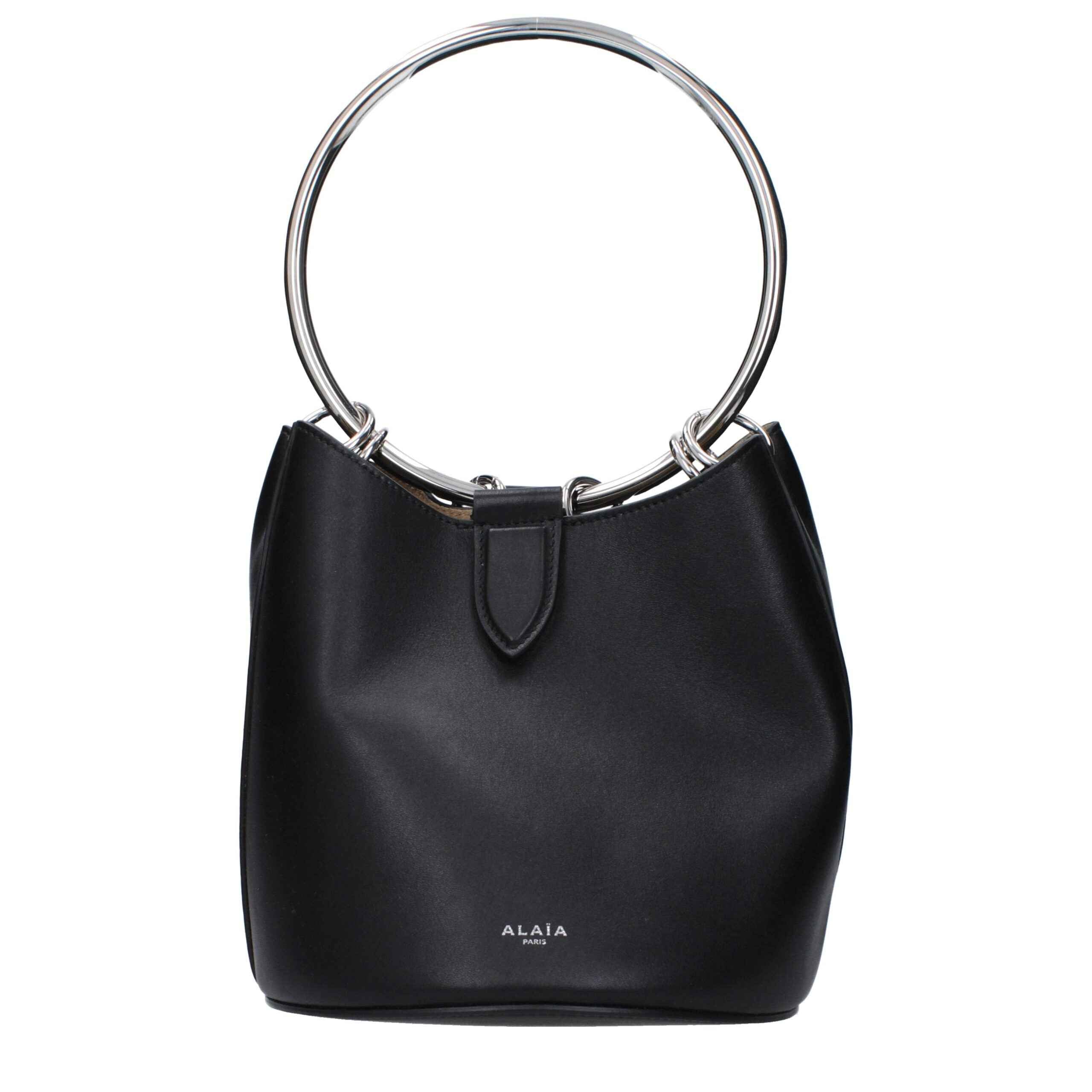 The product with MPN AA1S02820CA515999 and code F82447 leather in black is a handbags designed by Alaia. It has features like removable inner clutch, front logo, intentionally distressed areas may vary.