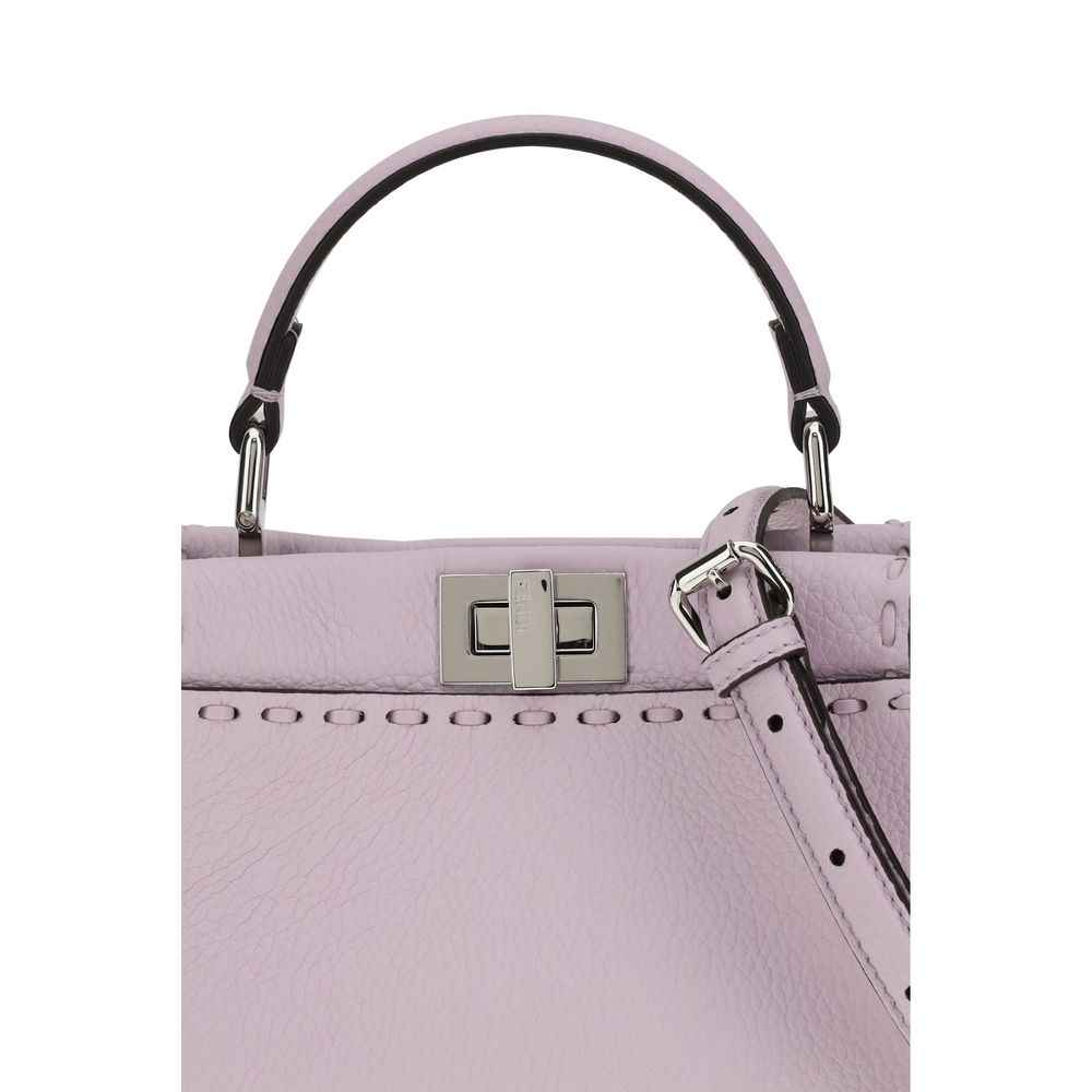 The Peekaboo mini Handbag by Fendi is an icon of Selleria craftsmanship, with 220 macro stitches made by hand. Made from Cuoio Romano, a natural grain calfskin leather tanned without metals, it features a tone-on-tone leather interior with a double compartment and zippered pocket. Finished with a silver Selleria plaque, palladium hardware, and the iconic turn lock closure on both sides, it can be carried by hand, on the shoulder, or crossbody thanks to its handle and adjustable and removable shoulder strap.