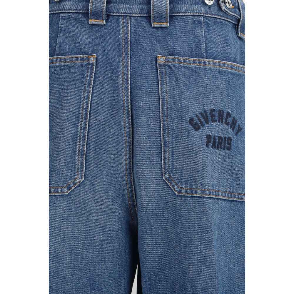The Cocoon cargo Jeans by Givenchy reimagine denim with a bold and contemporary cropped silhouette. The lightly washed cotton construction supports the structured shape, while the adjustable waist with buttons and belt loops ensures versatility. Front, side and back pockets articulate the design with a utilitarian attitude, enhanced by the embroidered logo lettering that subtly signs the piece.