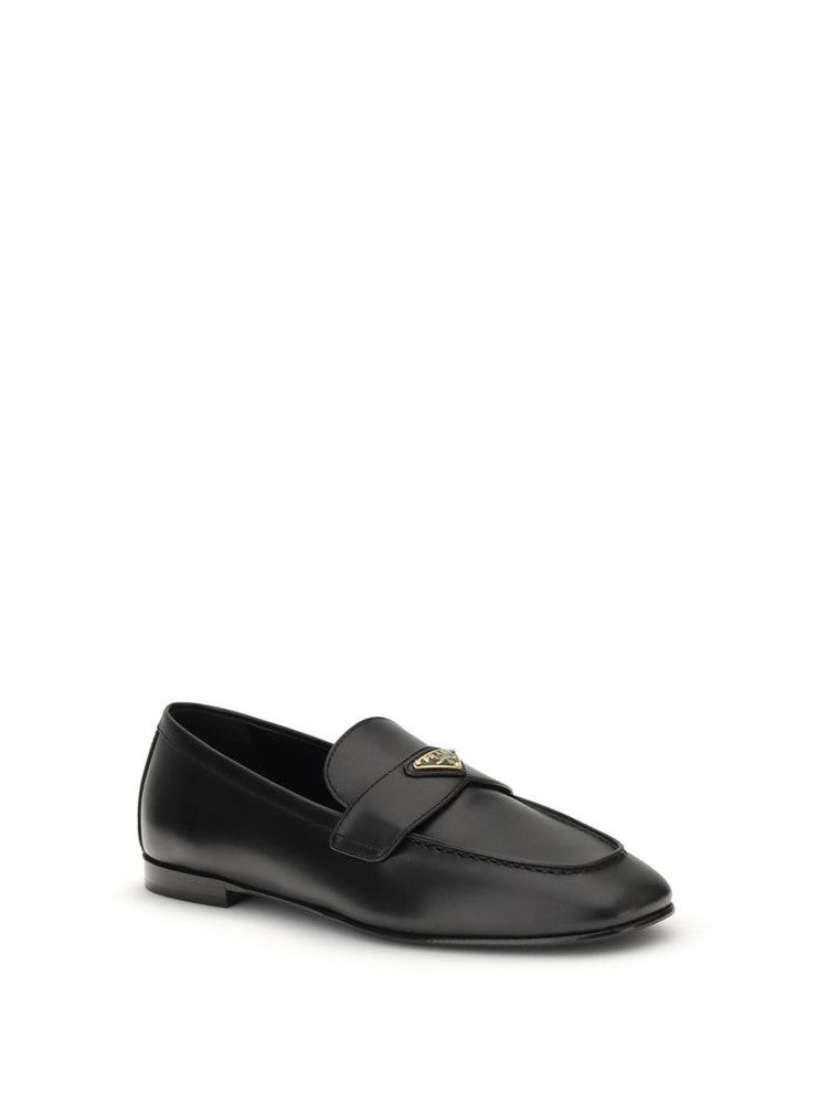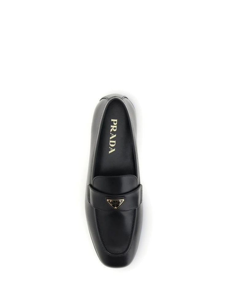 Prada’s smooth leather Loafers combine classic elegance and contemporary identity. Characterized by a flat sole and squared toe, they feature a tray finished with the iconic logoed triangular plaque, a distinctive detail that signs the essential design with understated sophistication.