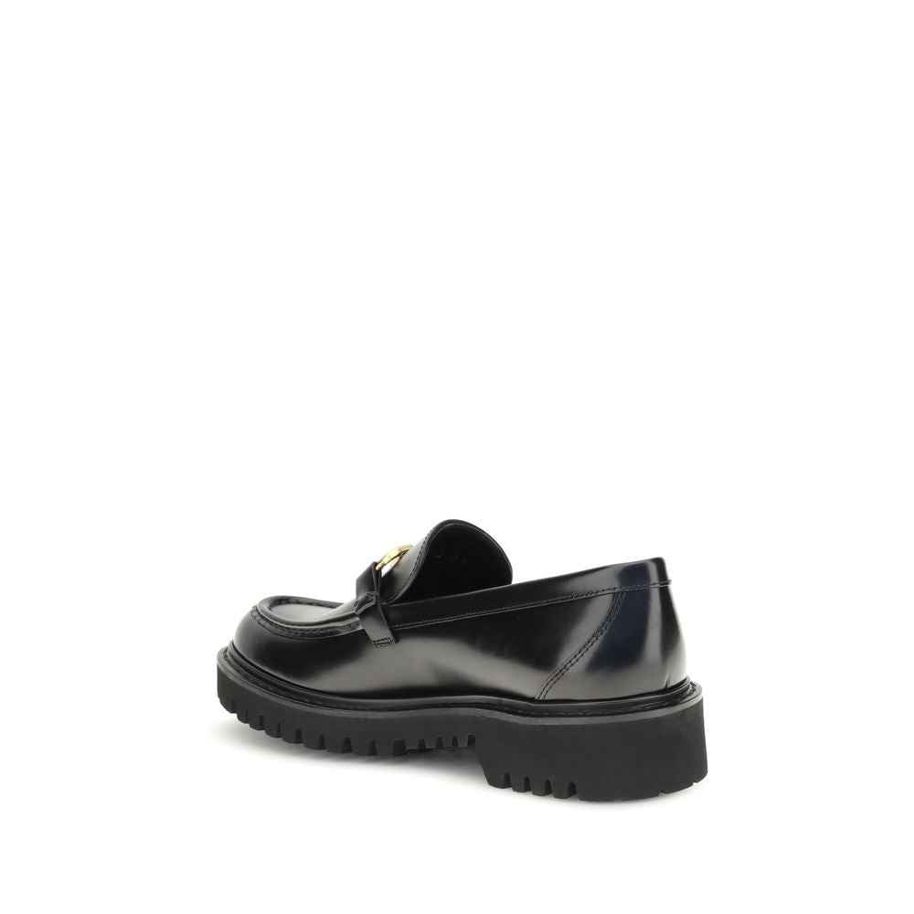 Valentino Garavani’s VLogo Loafers is a gritty reinterpretation of a timeless classic. Crafted with artisanal care, it is embellished with the Signature VLogo detail in brass with an antique-effect finish, giving character and recognizability to the design. The rubber lug bottom adds a contemporary touch while providing stability and comfort.