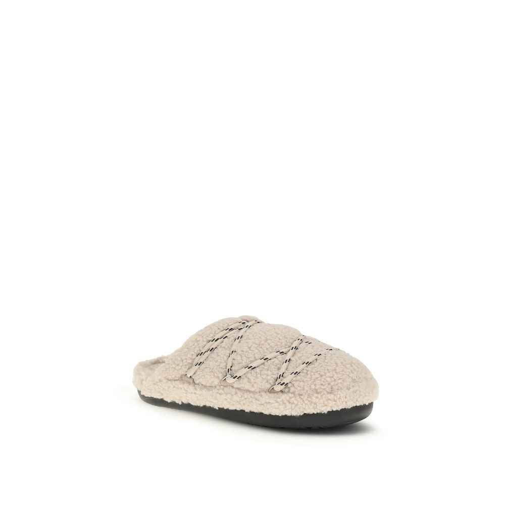 The Teddy Slipper by Moon Boot blends elegance, comfort, and cosmic coolness. Featuring the brand’s iconic lacing, a soft teddy finish, and a non-slip rubber sole, this genderless slip-on adapts effortlessly to indoor and outdoor settings, or wherever life takes you. The design includes crossed tubular laces, metal eyelets, a branded heel counter, and a cushioned midsole that ensures a soft, stable step.