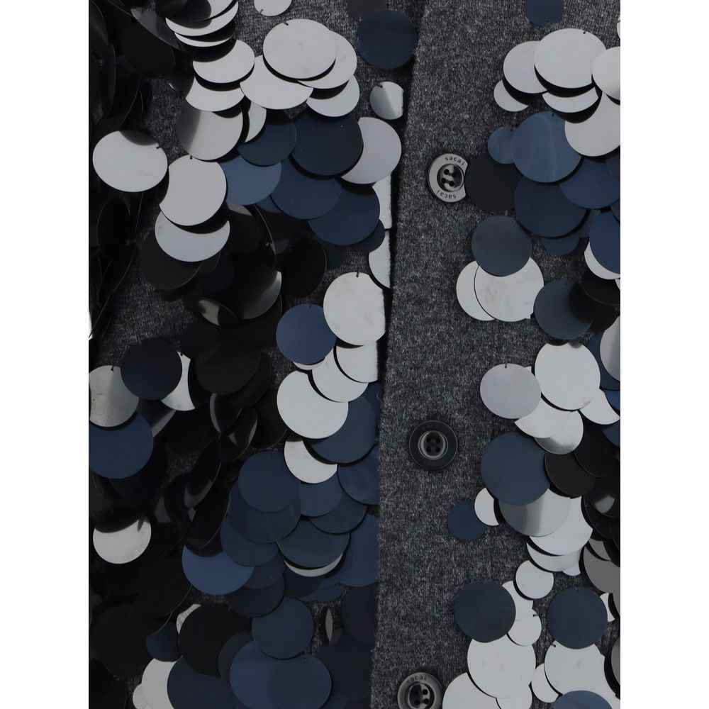 The Sacai Sequined Wool Cardigan fuses knitwear tradition with a contemporary sparkle. Crafted from pure wool, it is defined by oversized sequins across the front, designed to catch the light with every step. A V-neckline and buttoned closure preserve the cardigan’s timeless appeal, while ribbed trims provide structure and balance.