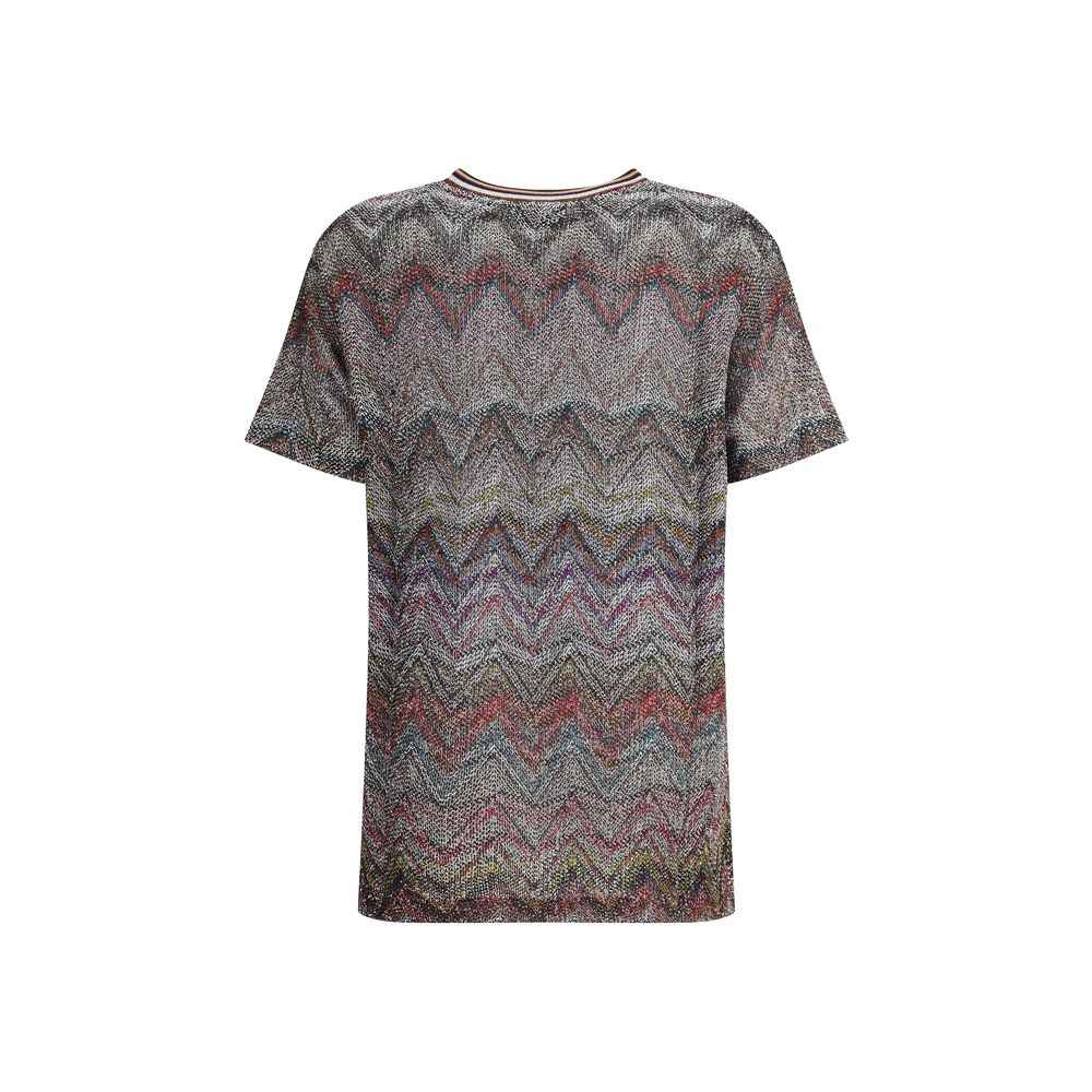 Missoni’s sequined zig zag T-Shirt is a bright and refined garment made with Caperdoni’s exclusive loom work. The Maison’s classic zig zag pattern is enriched with lamé filaments and sequins, creating a bright and sophisticated effect. Made from a viscose blend, it combines comfort and unmistakable style.