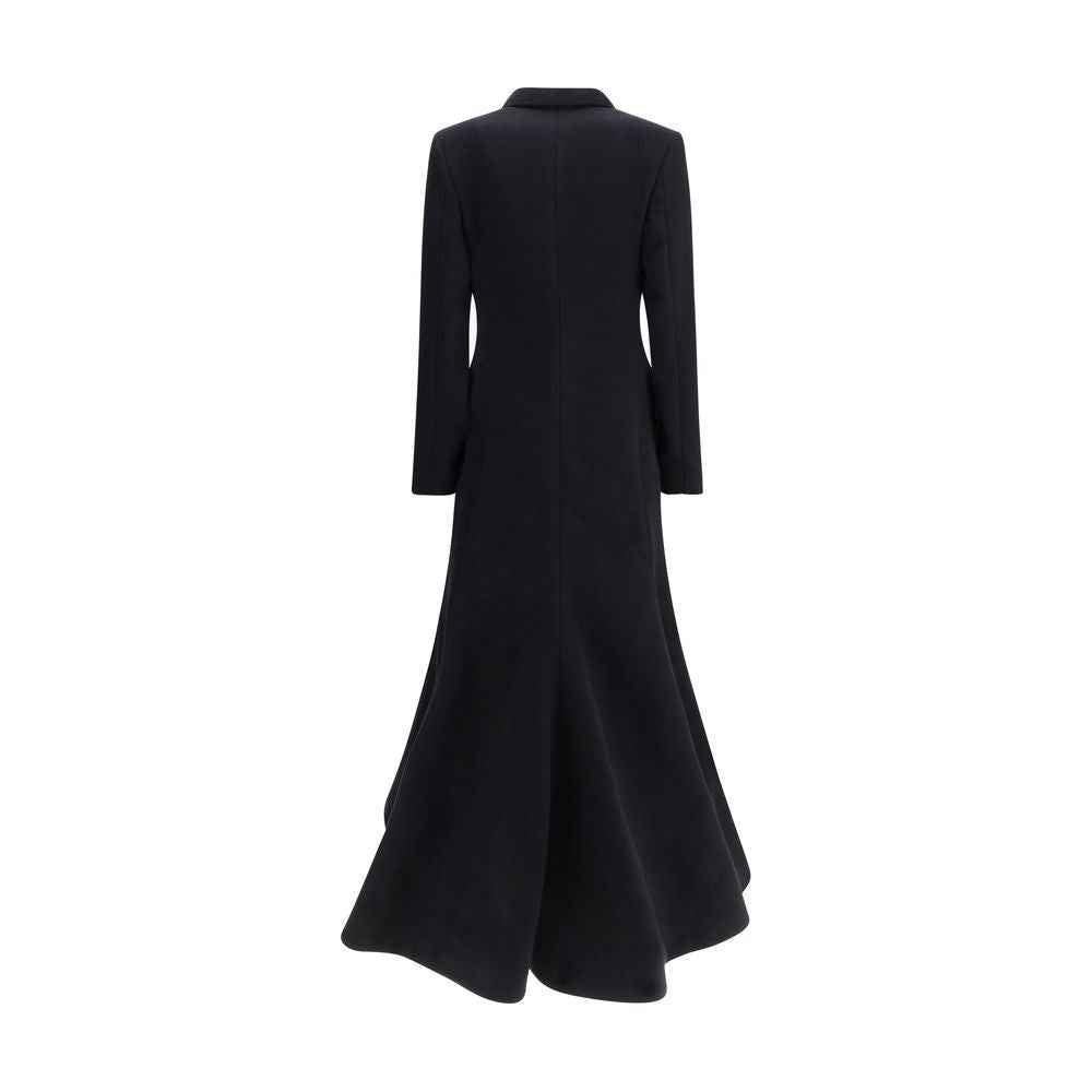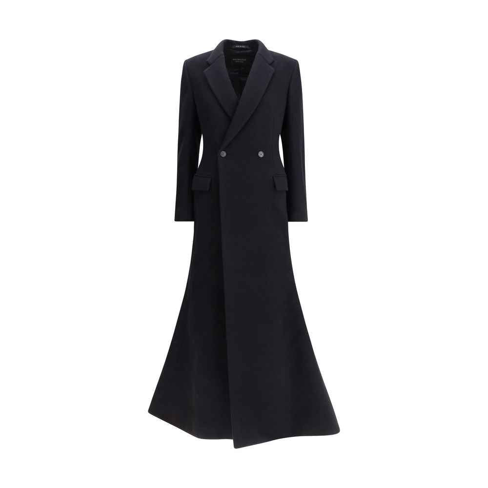 The oversized double-breasted Coat by Balenciaga is an icon of contemporary elegance, blending sartorial precision with bold proportions. Crafted from a luxurious black wool and cashmere blend, it features a wide, structured silhouette enhanced by padded internal shoulders. The double-breasted button closure and heavy non-stretch fabric give the piece a statement-making character. For a closer fit, it is recommended to size down.