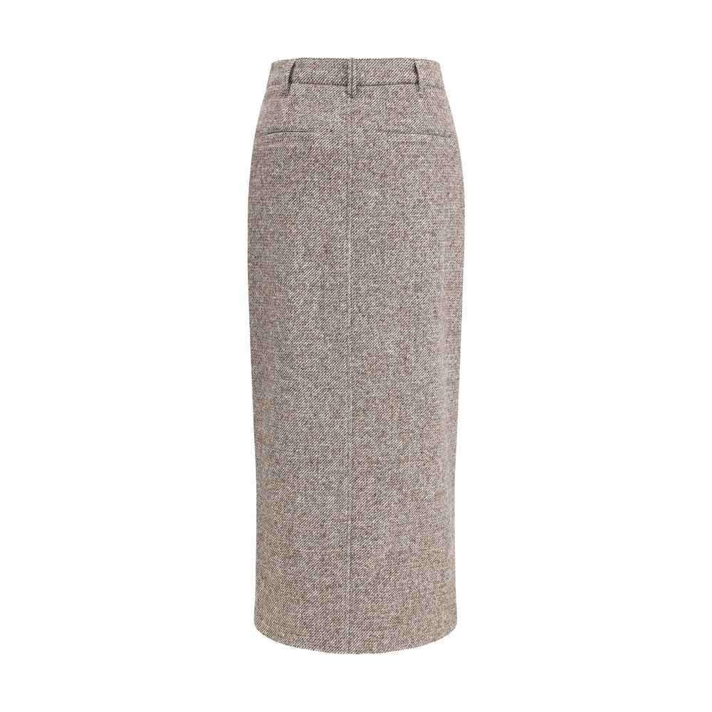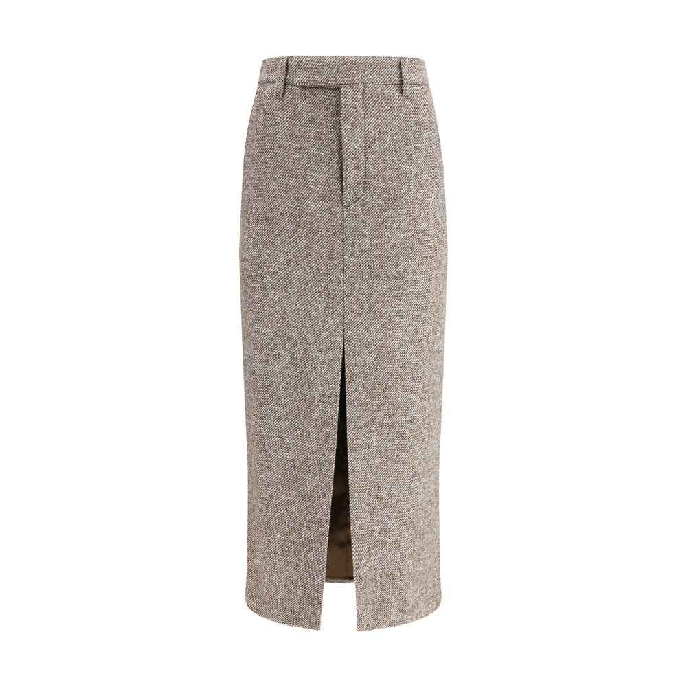 The long pencil Skirt by Brunello Cucinelli embodies timeless elegance through its clean lines and impeccable craftsmanship. The high waist enhances the silhouette, while the front and back slits add a balance of femininity and ease of movement. An iconic piece that blends sartorial refinement with understated modernity, perfect for interpreting contemporary style with effortless grace.