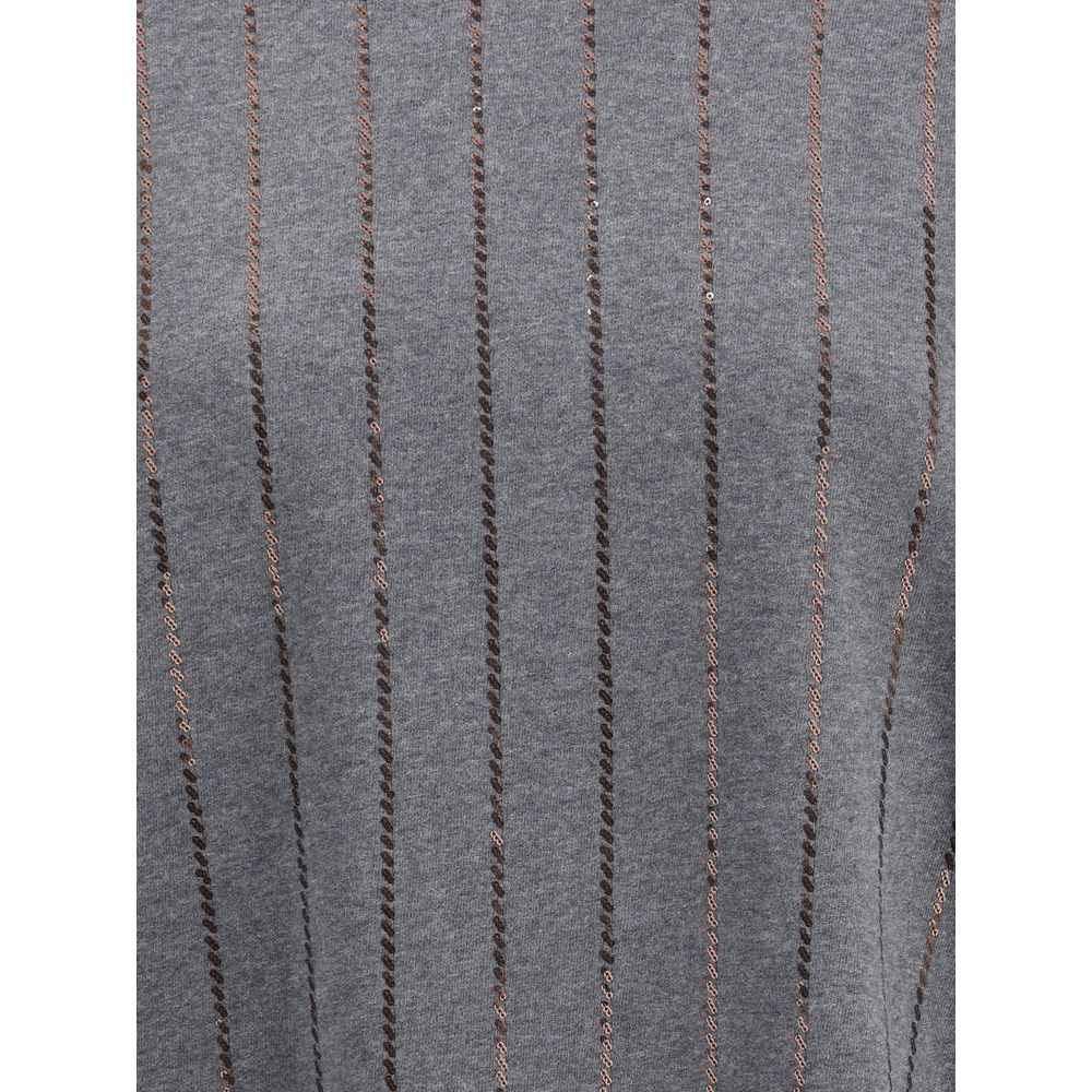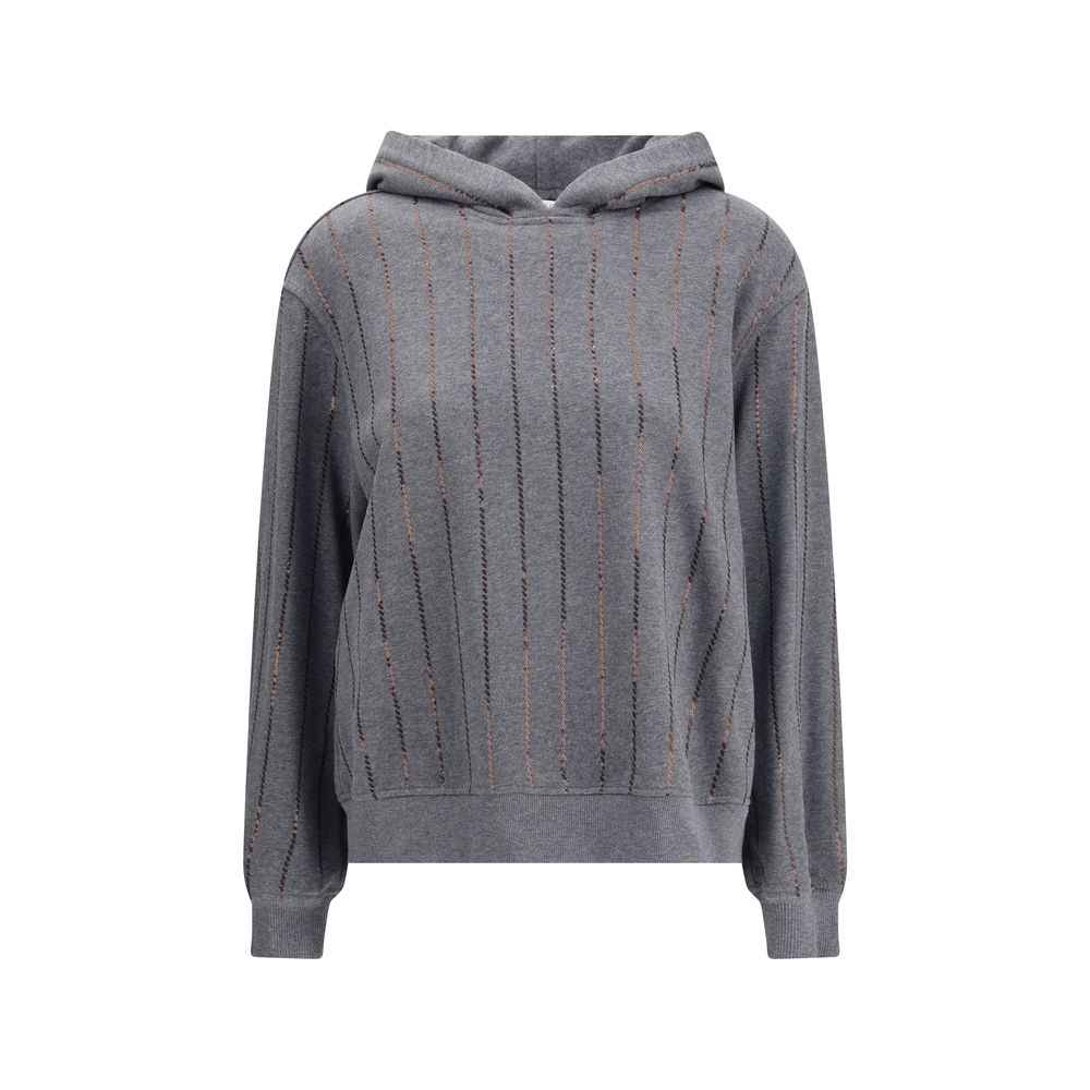 The cotton Sweatshirt by Brunello Cucinelli blends comfort and refinement in a piece with a modern, relaxed spirit. The hood and ribbed trims define a balanced sporty silhouette, while the dazzling chalk stripe sequin embroidery adds a subtle sparkle and signature sophistication. The long sleeves with cuffs complete the design, making this sweatshirt a perfect choice for effortlessly elegant casual looks and moments of refined leisure.