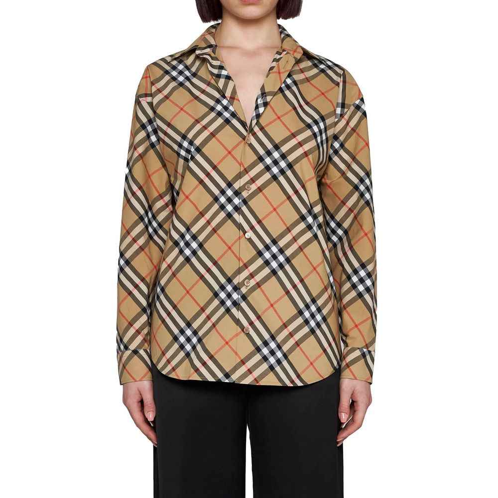 – Composition: 100% Cotton – Long sleeves – Curved hem – Buttoned cuffs – Machine wash (delicate) – Front button placket – Pointed collar – Burberry check-motif cotton poplin design – Made in Romania – Gender: WOMEN –