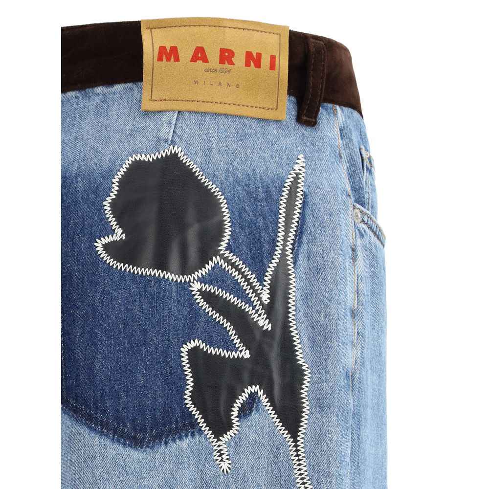 The cotton Pants by Marni feature a classic five-pocket silhouette, enhanced by a contrasting waistband that adds a distinctive touch to the design. Crafted in blue denim, they are finished with a leather logo patch on the back. An iconic piece combining craftsmanship and contemporary style.