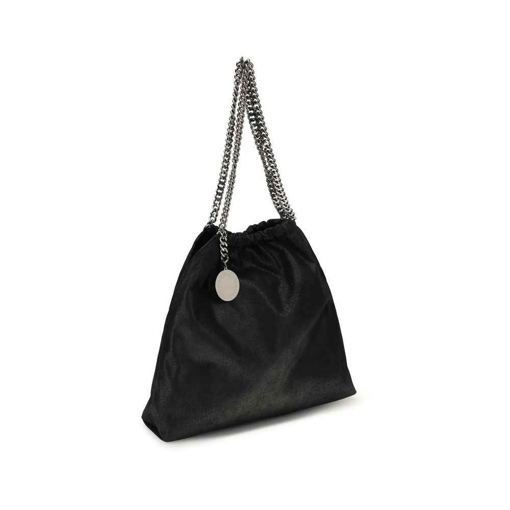 The Falabella medium Drawstring Shoulder Bag by Stella McCartney combines iconic design and sustainability in a distinctive accessory. Made of matte vegan Shaggy Deer fabric with semi-gloss grain, it is complemented by the emblematic diamond-effect chain in gold-colored recycled brass and aluminum. It features two top handles, a main compartment and an interior zippered pocket, while the top drawstring closure and engraved logo medallion charm add a touch of refined and recognizable style.