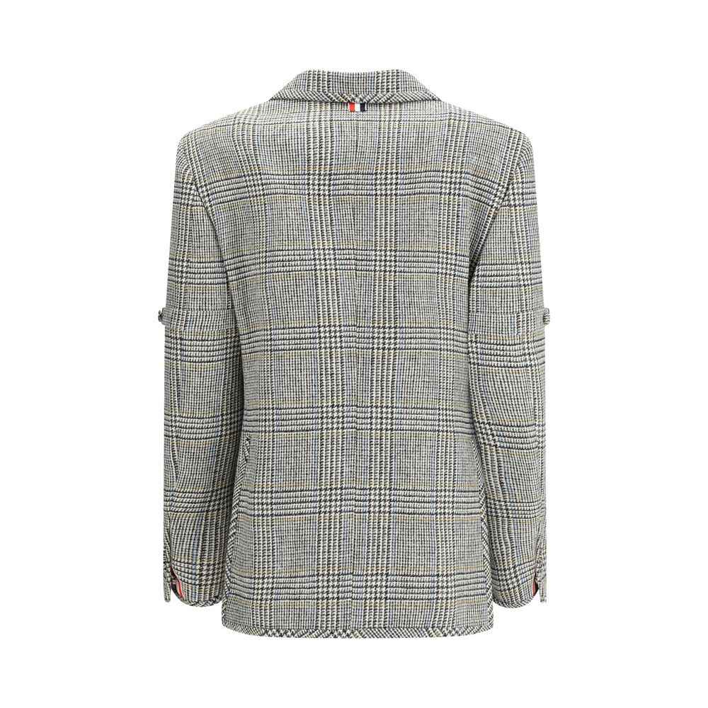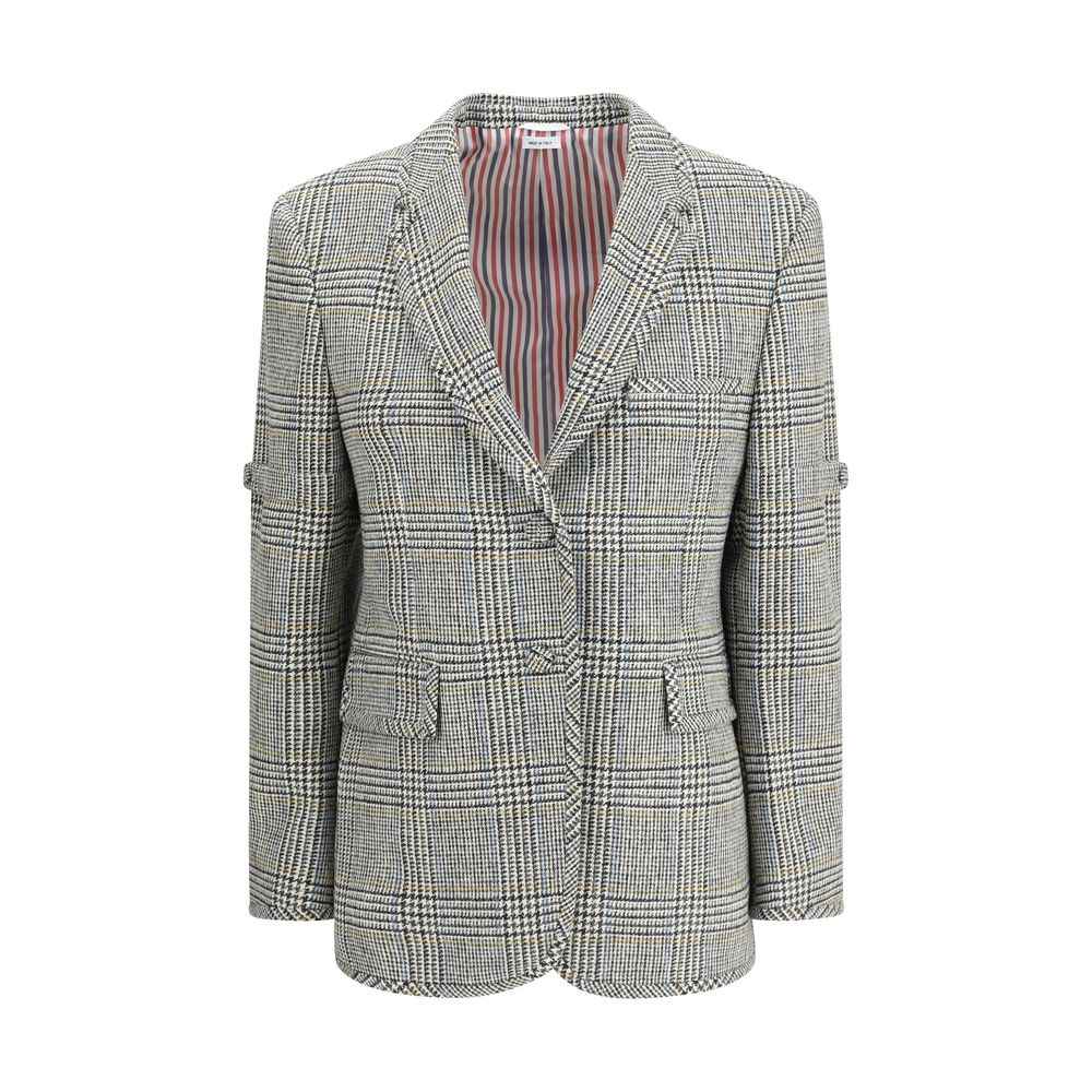 The Prince of Wales wool Blazer by Thom Browne embodies the perfect balance between traditional tailoring and modern refinement. Crafted from pure wool with a Prince of Wales check pattern, it features a single-breasted front button closure, mirror lapels, a breast pocket, and flap pockets. Structured shoulders and back vents define a sharp, contemporary silhouette, while the patterned cupro lining highlights the maison’s meticulous craftsmanship. A timeless piece that captures the distinctive elegance and architectural precision of Thom Browne’s design.
