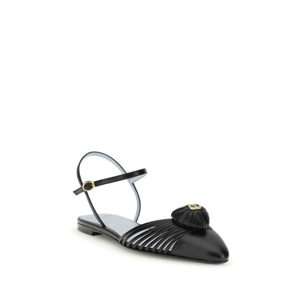 Valentino Garavani Black Calf Leather Bos Taurus Ballet Flats
