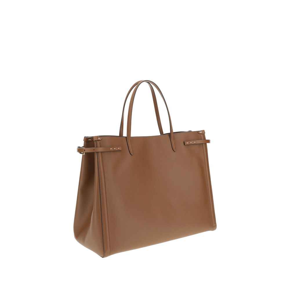 The Valentino Garavani Large Antibes Tote Bag is a sophisticated and versatile accessory. Made of high-quality leather, it features a leather patch with the Signature VLogo metallic element, which adds a distinctive touch. Double handles and metallic parts with a gold finish enhance the elegance of the design, while the magnetic closure provides practicality. Inside, a flat zippered pocket offers more organization, and adjustable buckles on the sides allow you to change the capacity of the bag. Protective feet on the bottom complete the look, making this bag ideal for any occasion.