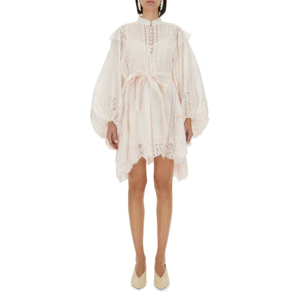 – Composition: 100% Cotton – Hand wash – Balloon sleeves – High collar – Jeweled buttons – Petticoat with thin adjustable straps – Wide long sleeves – Ruffle detailing at shoulders – Removable self covered waist tie – Made in China – Gender: WOMEN –