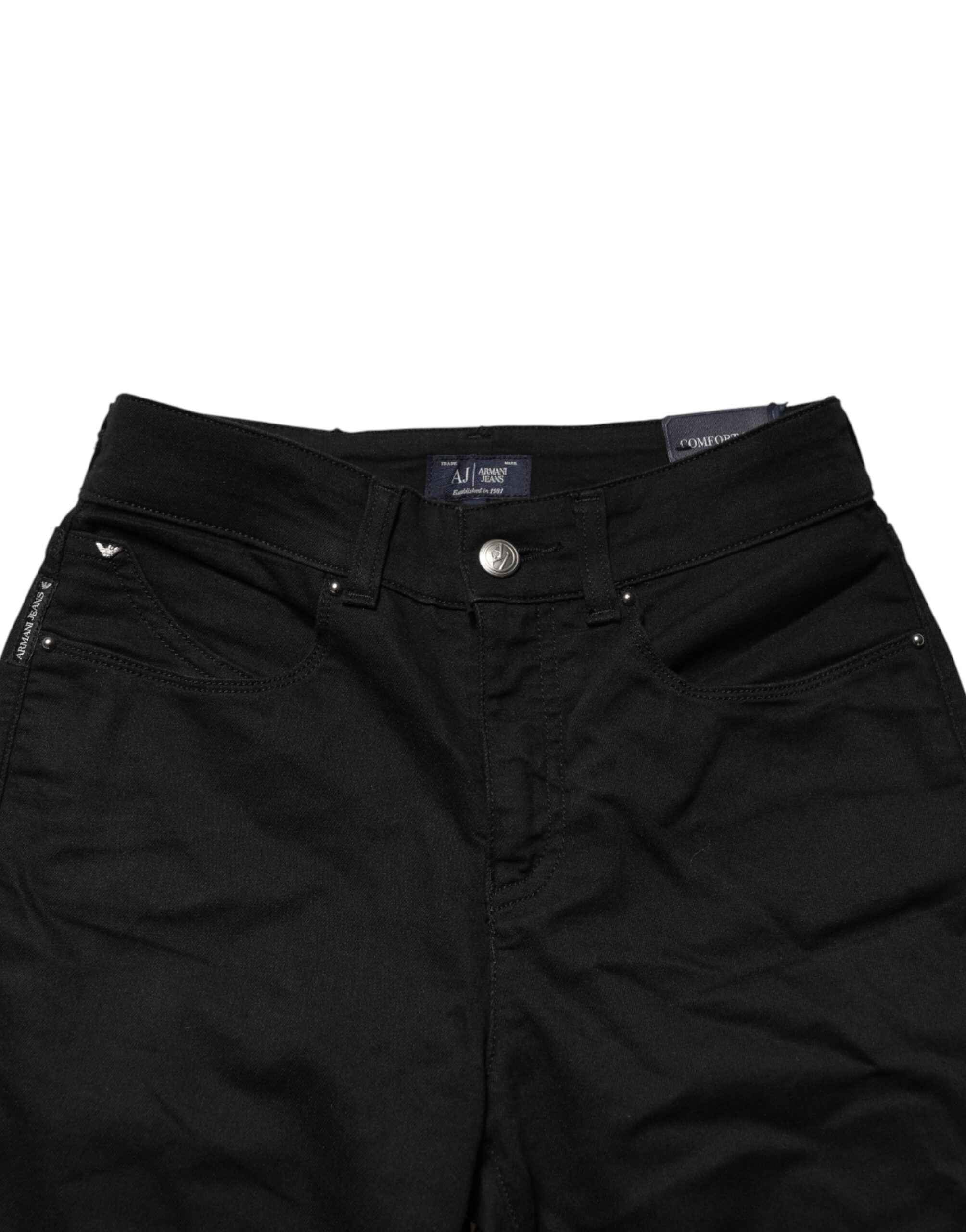 are crafted from premium black cotton denim with a flattering mid-waist, skinny fit. Designed for comfort and style, they offer a versatile look that transitions effortlessly from casual to smart-casual occasions.