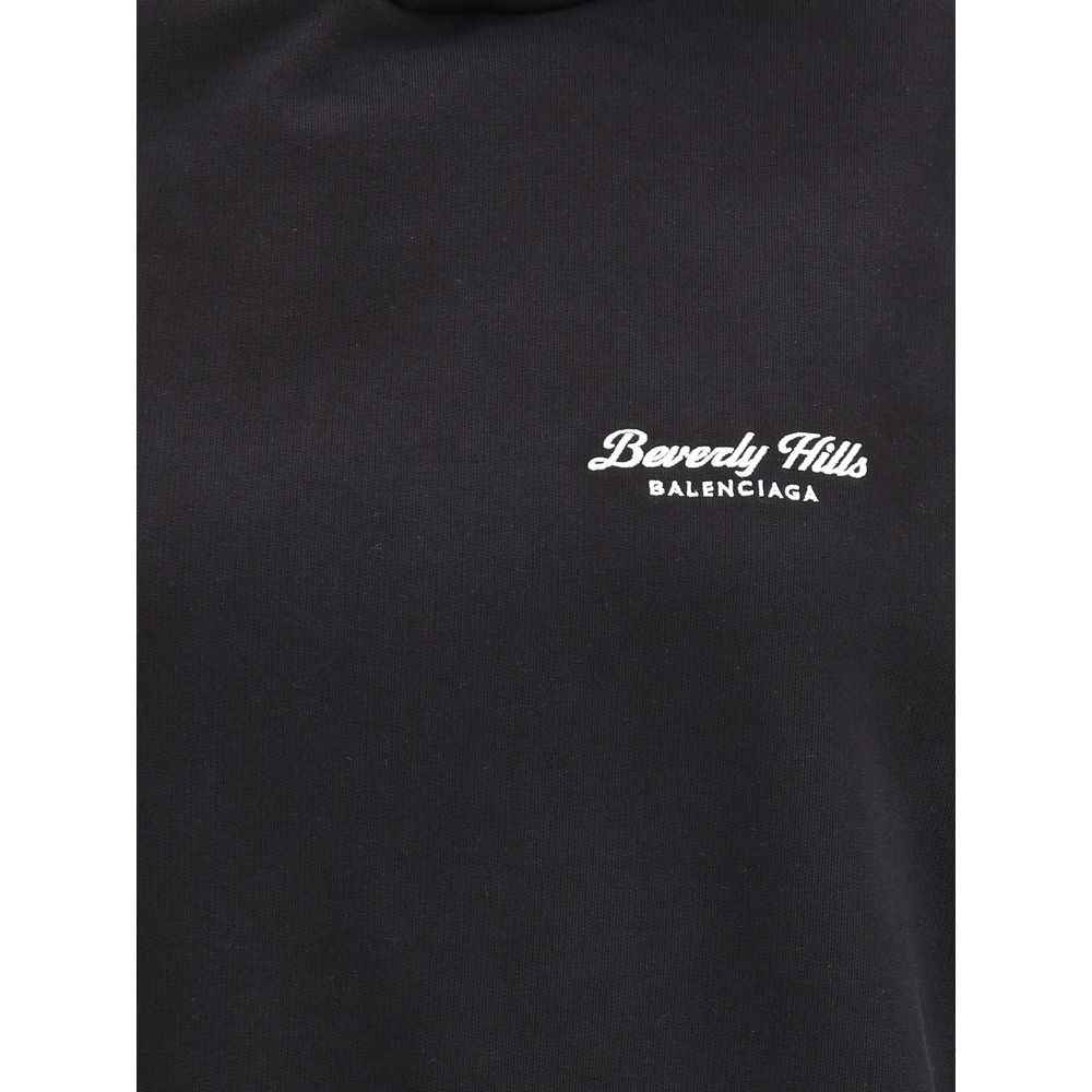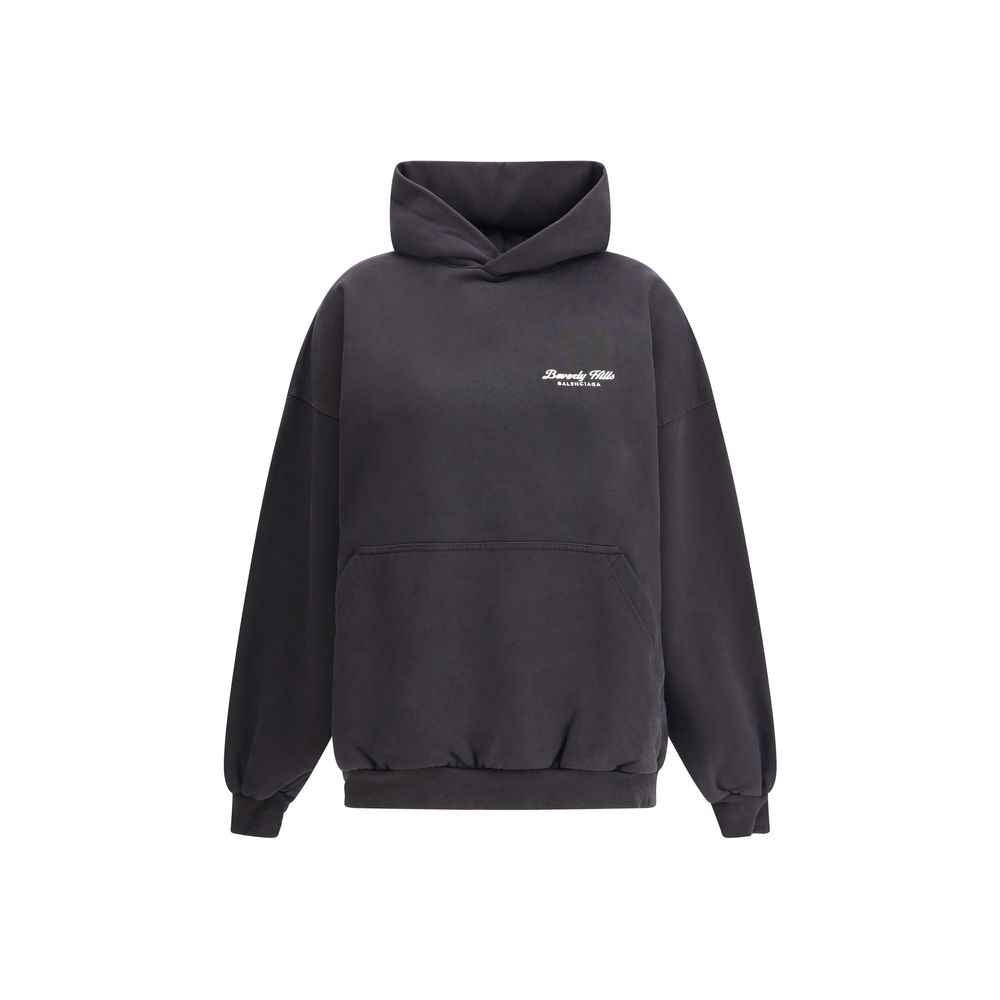 Balenciaga’s Hoodie is an iconic piece that combines comfort and urban style with a touch of luxury. Featuring a pouch pocket on the front and ribbed edges, it offers an over fit that provides freedom of movement and a casual look. The lettering logo on the chest adds a distinctive and contemporary element, while the hood offers practicality and an added dimension to the design.