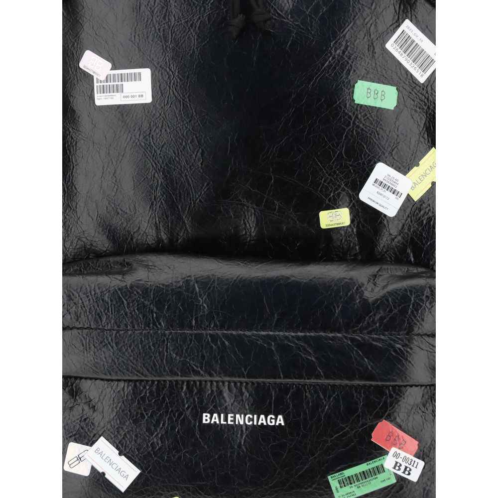 The Explorer Backpack by Balenciaga is crafted from soft Arena lambskin, embellished with printed stickers for a distinctive, graphic touch. Featuring a top handle and adjustable shoulder straps, it features a two-way zip closure, a front zip pocket, and an organized interior with a zip pocket and a patch pocket. The design is completed by matte black finishes, the embossed and printed Balenciaga logo on the front, and zipper pulls with an engraved BB logo and cotton cord.